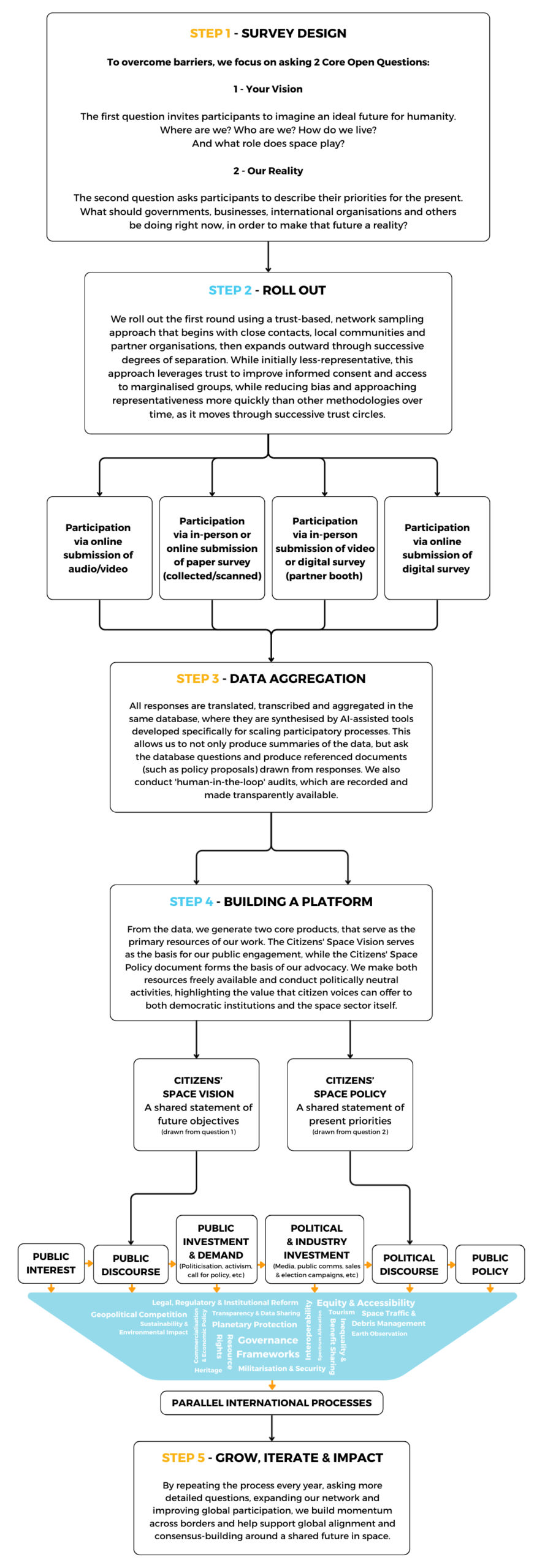 Our guiding principle for this initiative is accessibility. We want to create a point of access to our shared future in space with no special requirements or specialised knowledge. Something that translates across nations and cultures. Something anyone can be a part of.